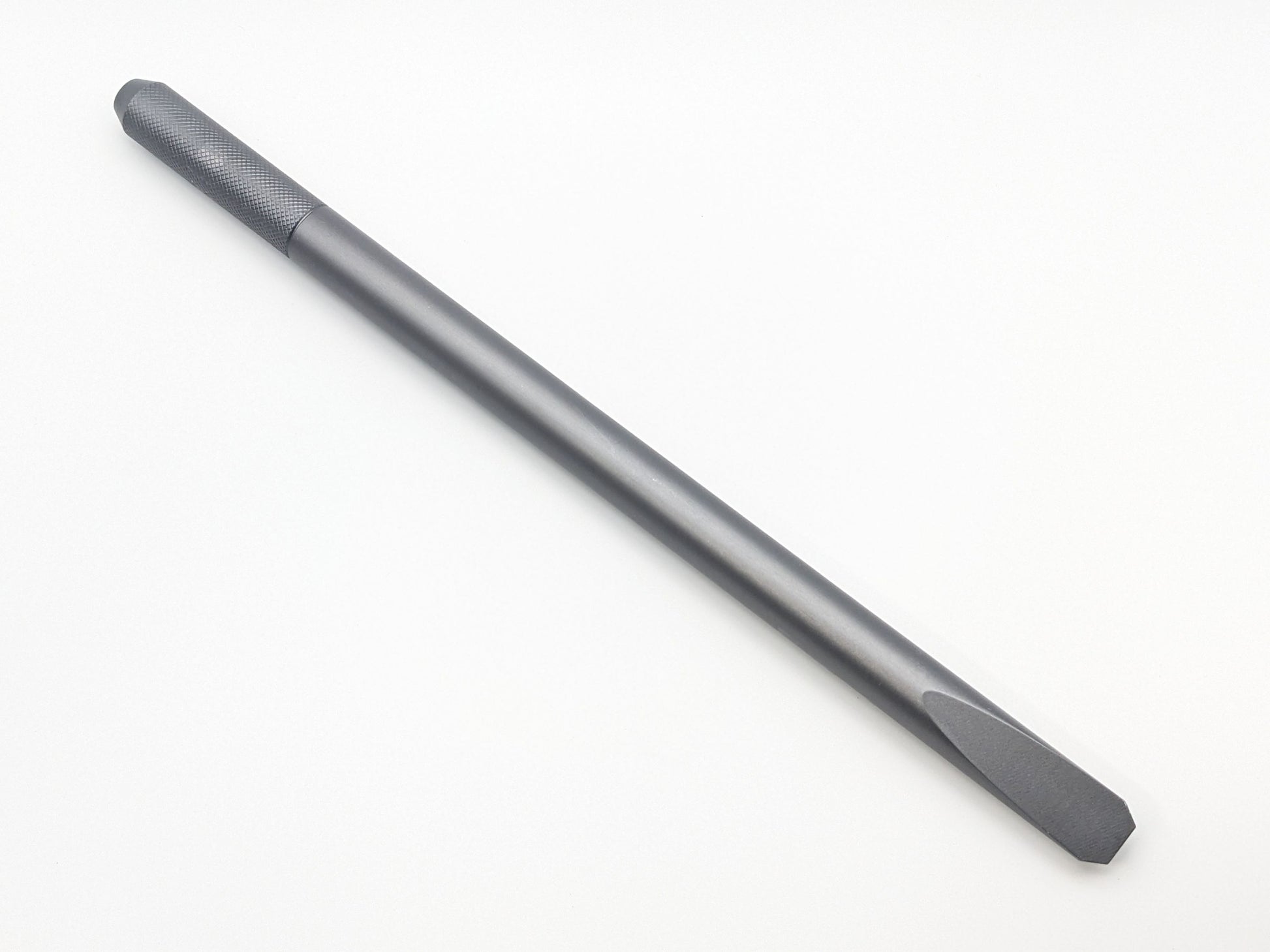 比重がステンレス7.93g/cm3に比べ半分以下の2.8g/cm3と軽量で、引っ張り強度はステンレス約520N/mm2に対し超超ジュラルミンは約570N/mm2と高い強度を誇ります。