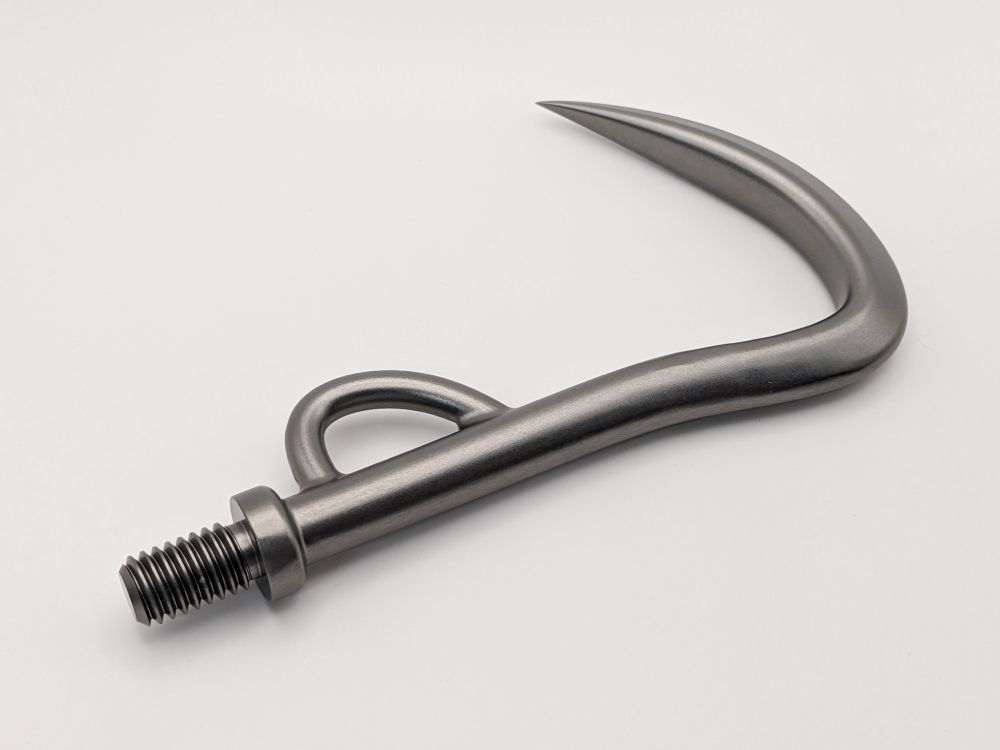 高精度なCNC削り出しで製造しており、ロープを結ぶアイ部分も溶接加工ではありませんので破断の心配無く、記録級の魚でも余裕を持って引き上げることができます。