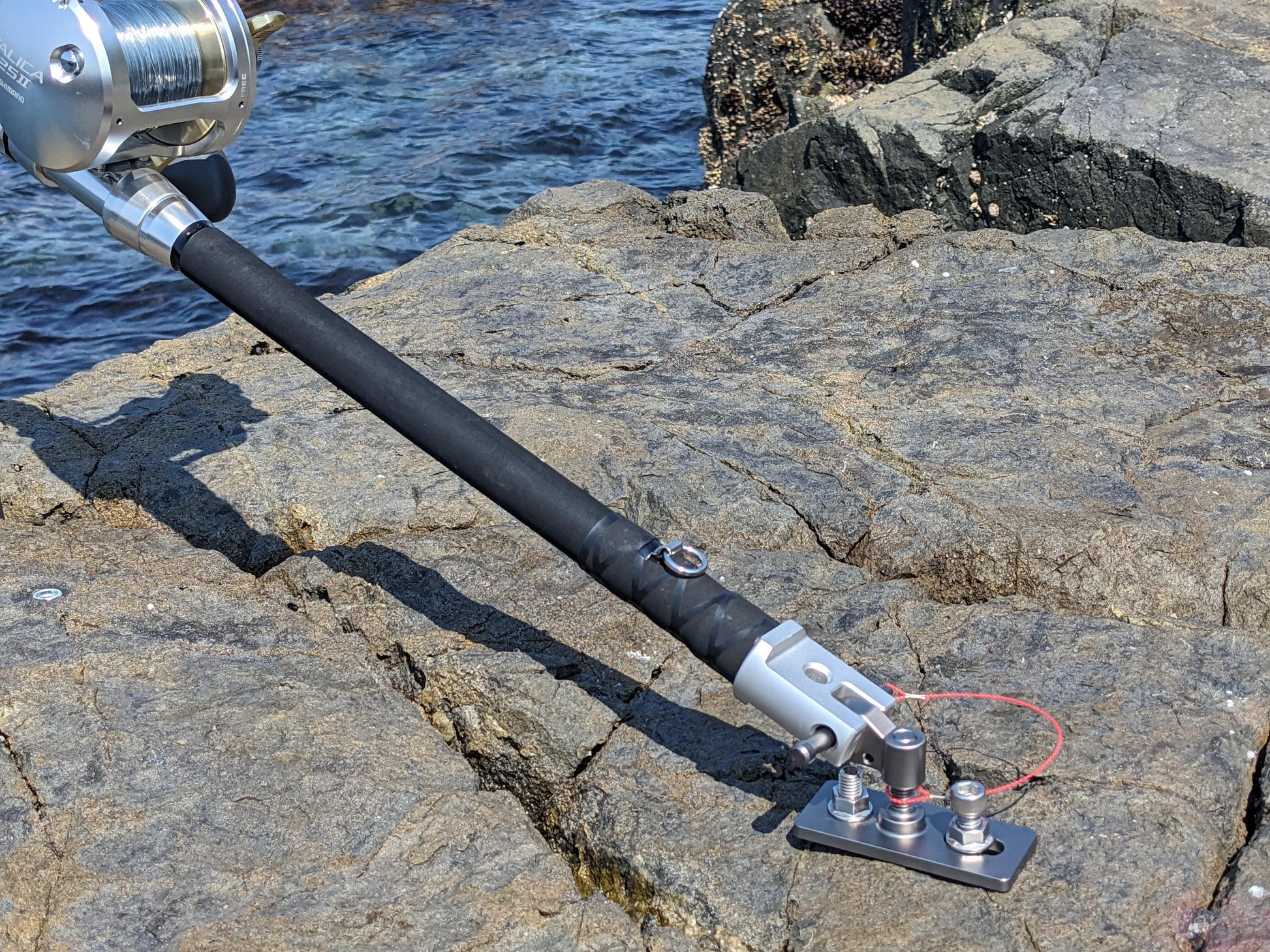 横ピン仕様で竿を固定できる後受けです。(ダイワ幻覇王クエ等)