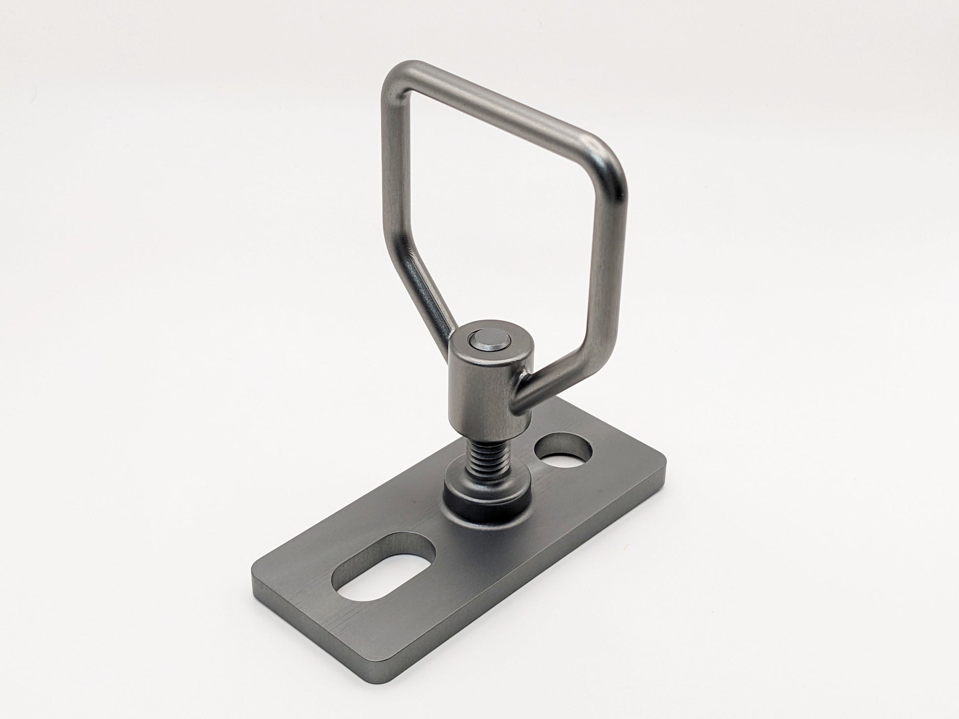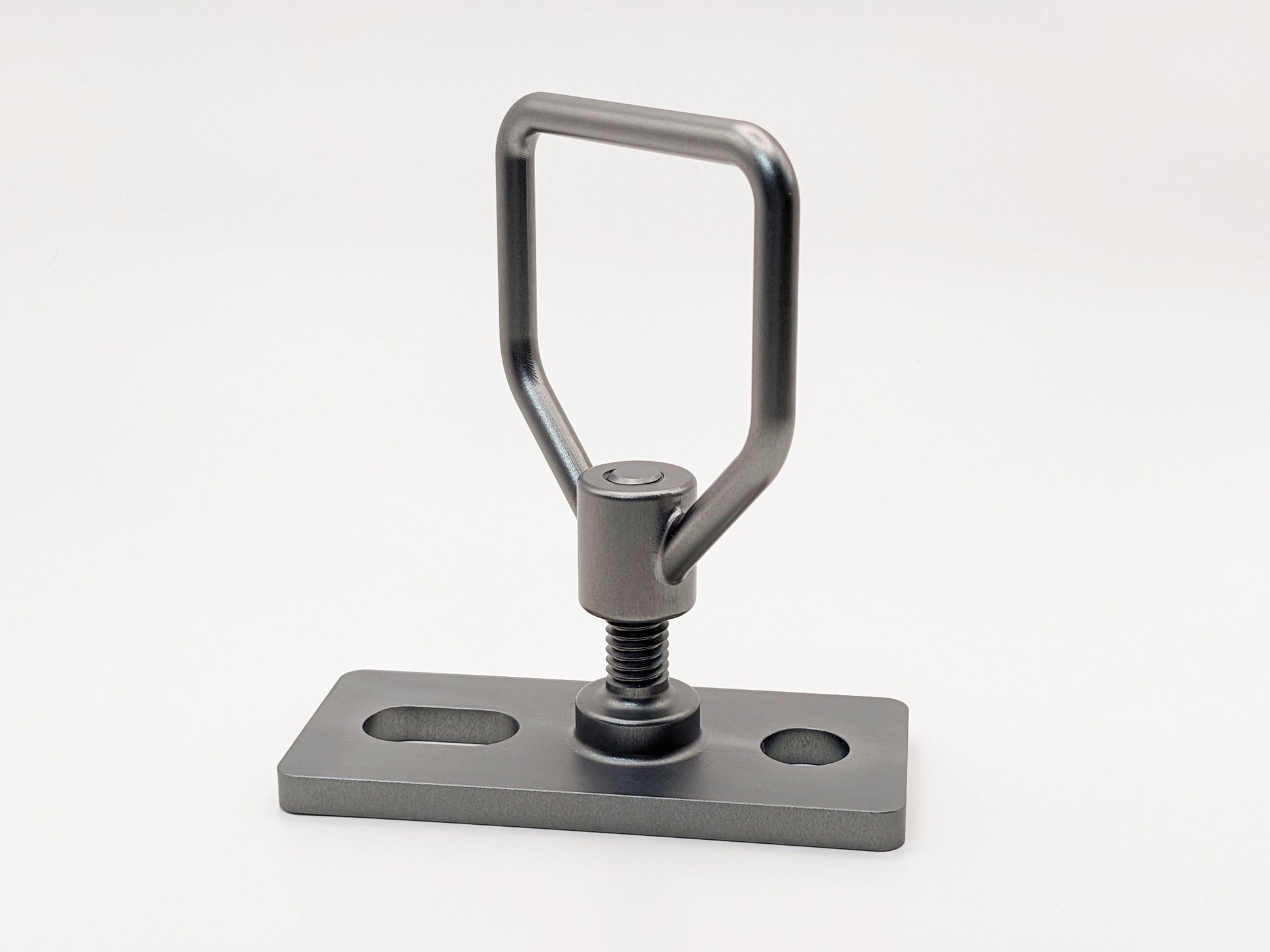 基本的には片方だけのアンカー止めで使用できますが、砂岩など設置場所が弱い岩質の場合はダブルアンカーにすることでより強い固定が可能です。(片穴だけで設置する場合は小さい方の穴を使用してください)