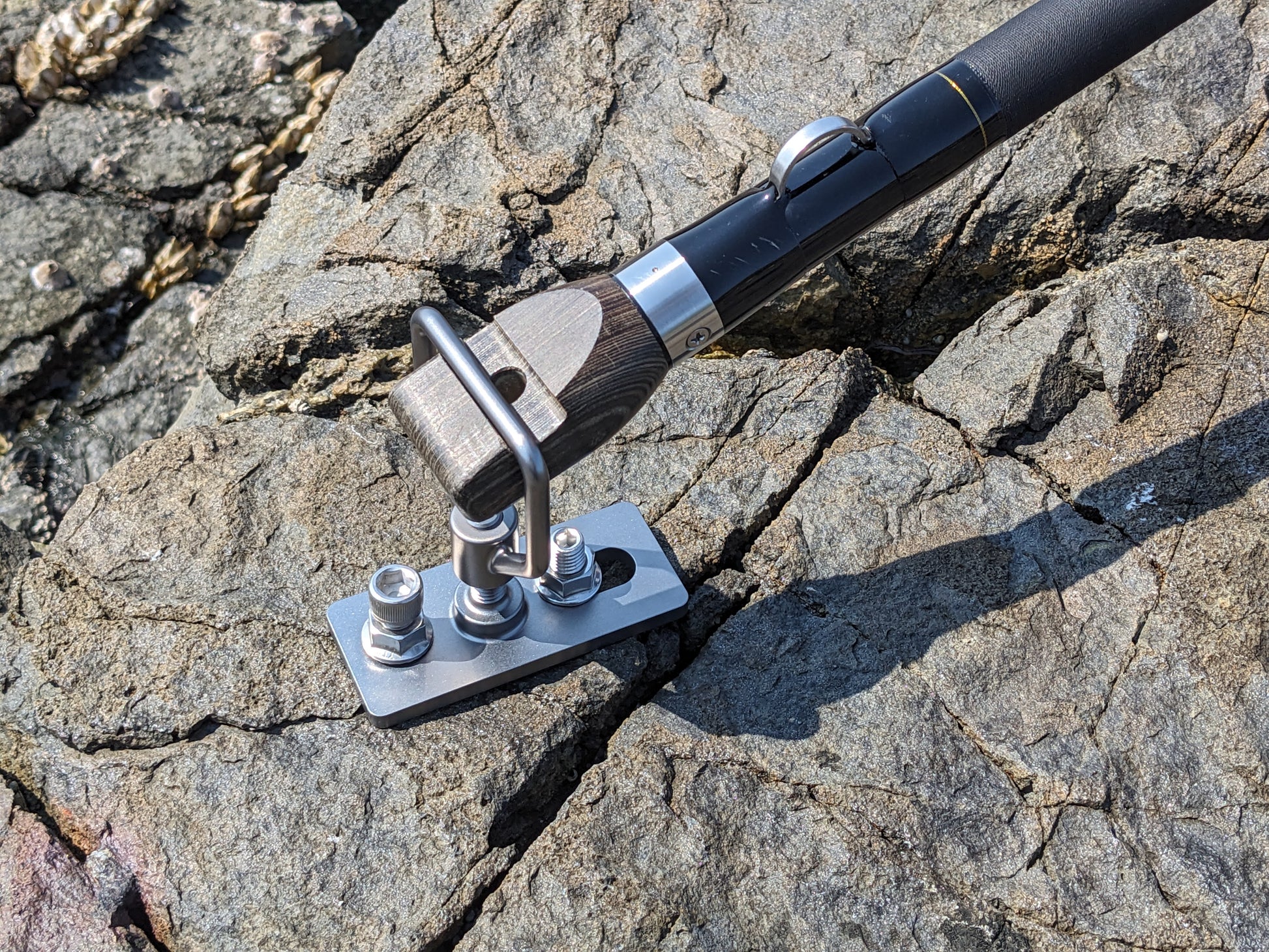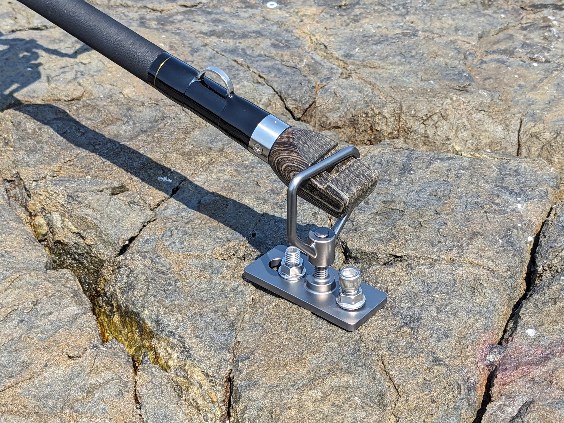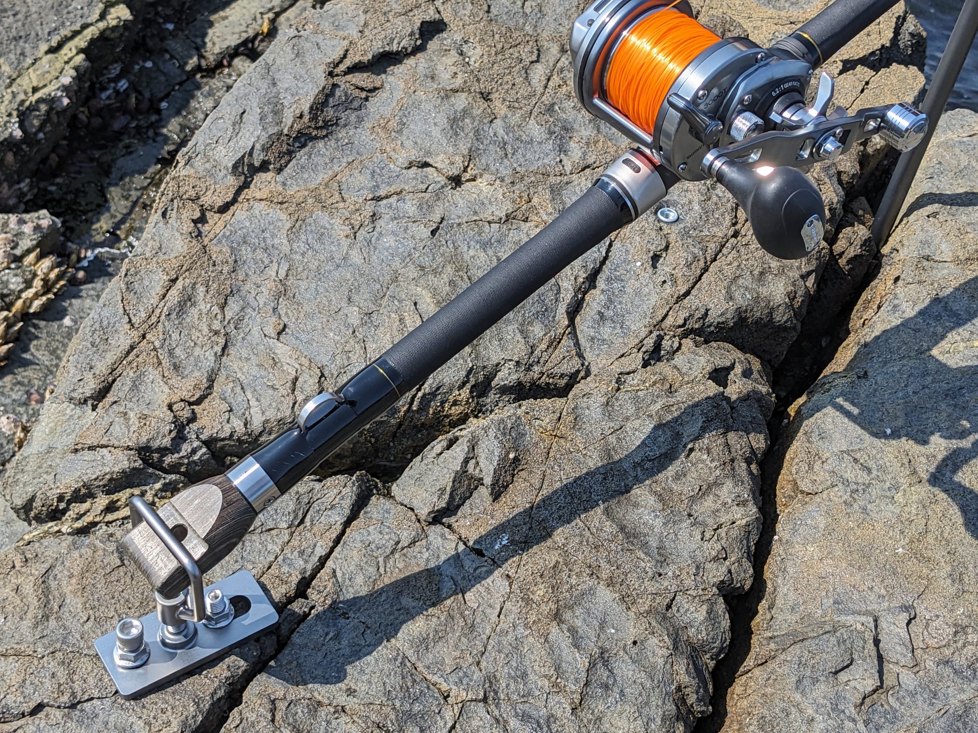 ライトクエ釣りの場合でも石鯛用ピトンでは強度が足りず、ピトンの破損やシャフトの折れ・曲がり・抜けなどのトラブルが起こる可能性があります。子アラのポイントで4~5kg程度までの魚であれば石鯛用ピトンでもピトンアシスト等を使うことで対応できますが、そのような子アラメインのポイントでも不意に7~10kgくらいの魚が食ってくる可能性は十分ありますので万全を期して竿尻はアンカーでの固定をお勧めします。